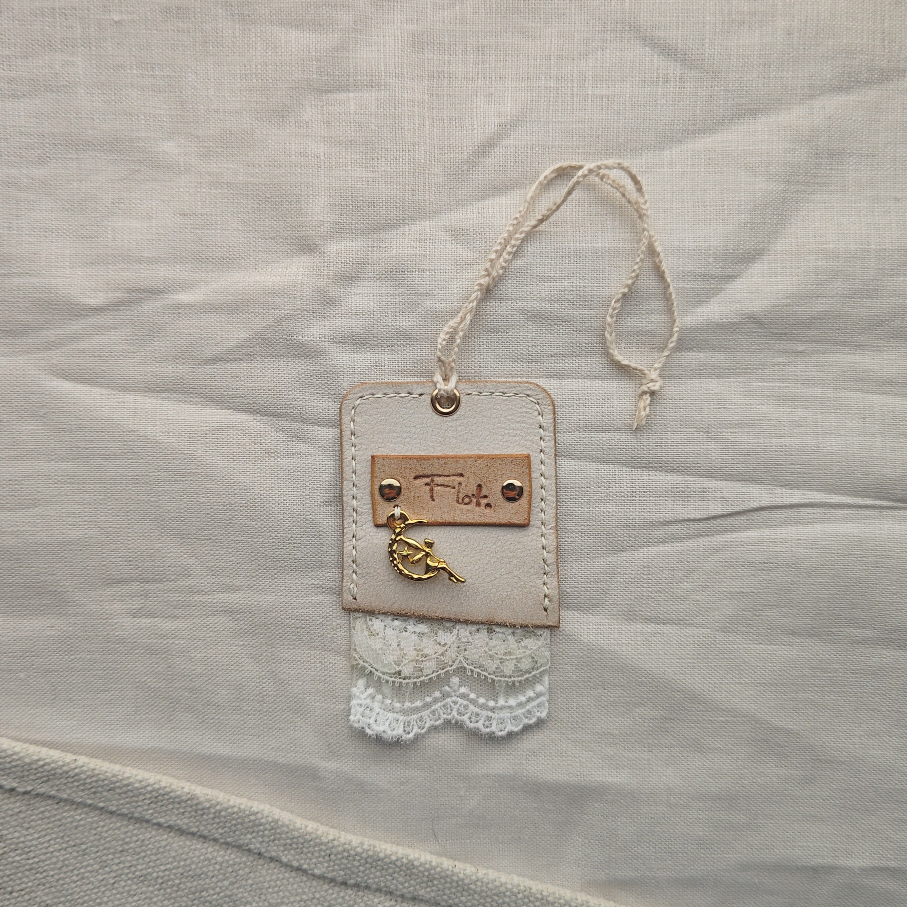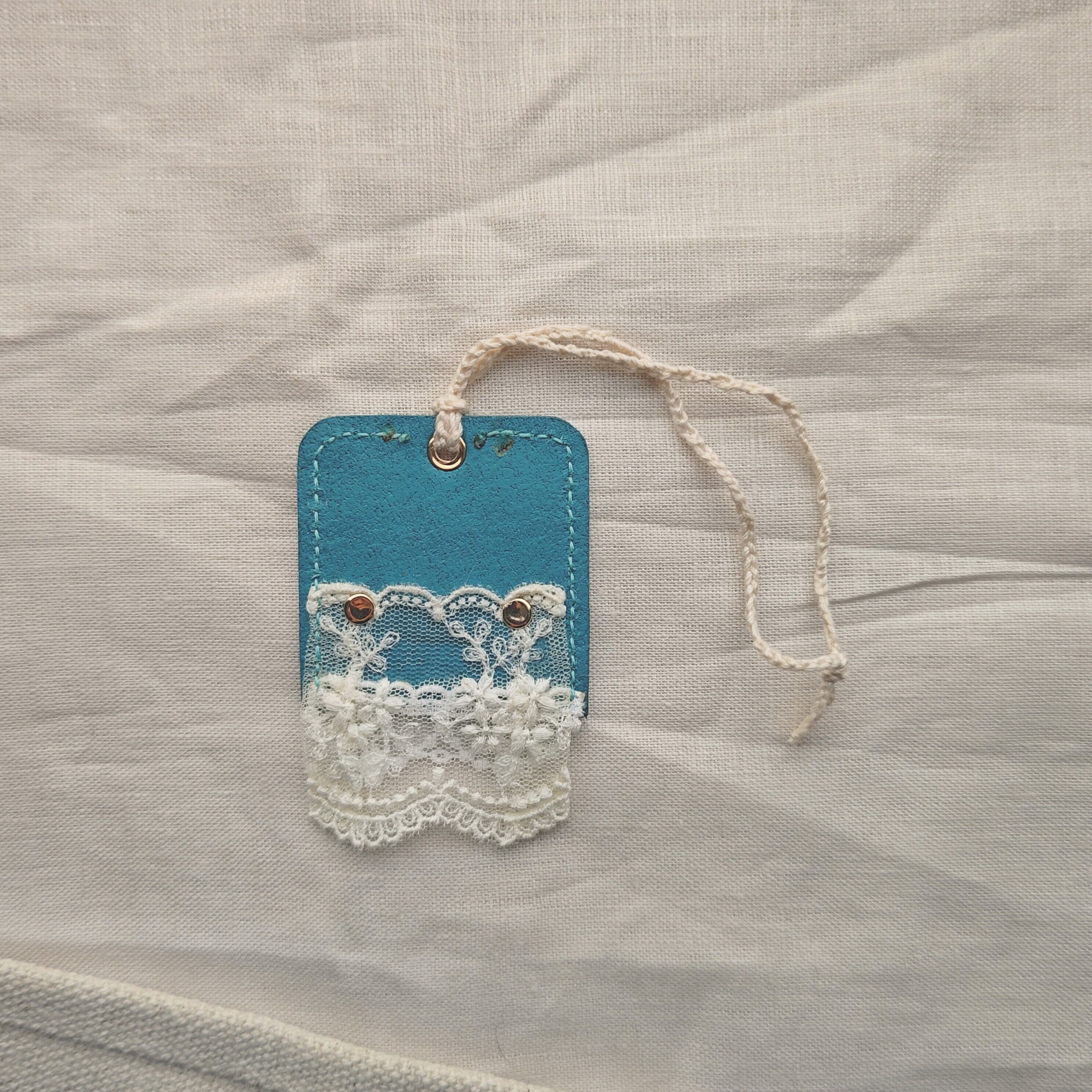個性的なレースを添えた小さな断片。革の端にいい味が宿っています。