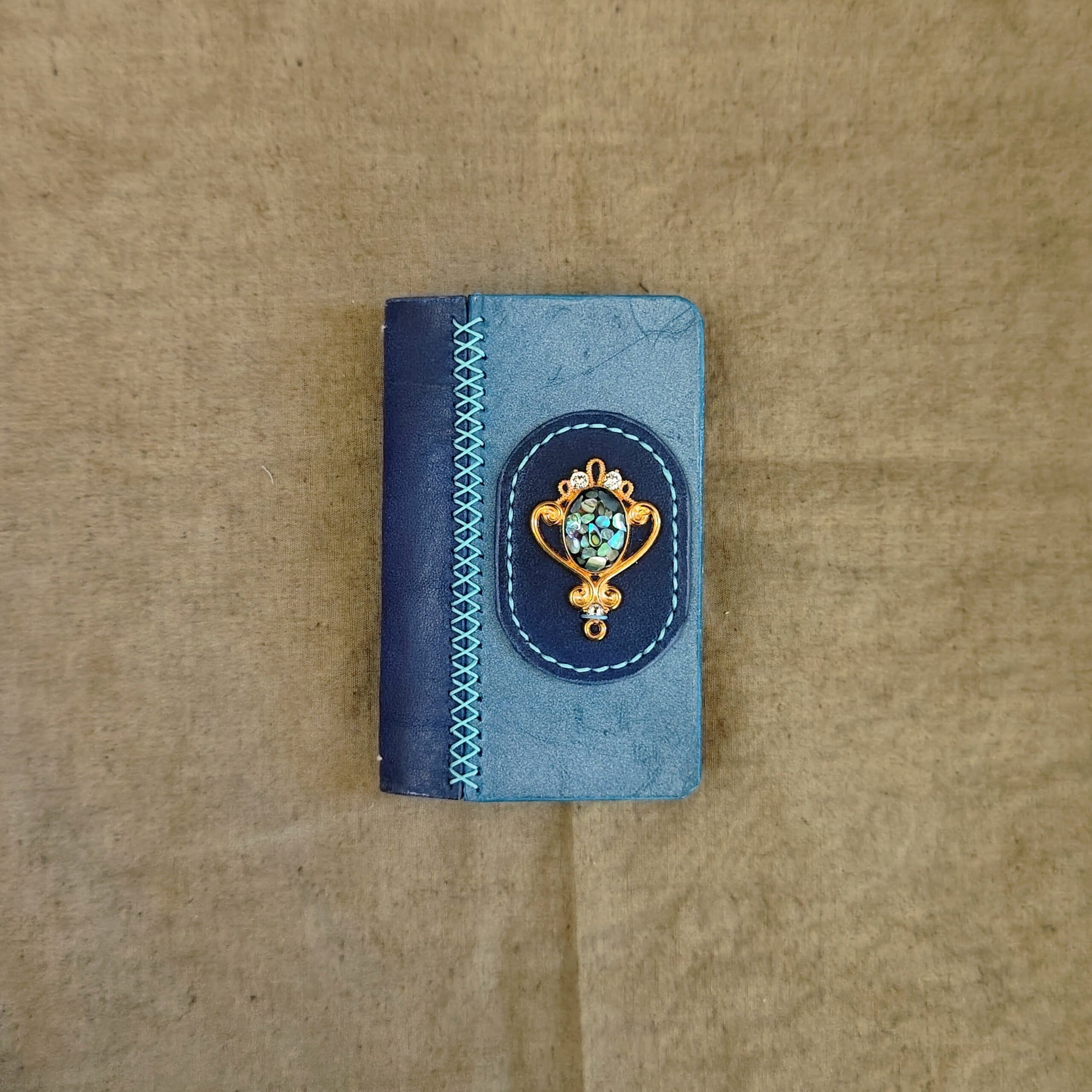 こちらのカバーも2種類の革を用いています。経年変化後はツヤツヤに。